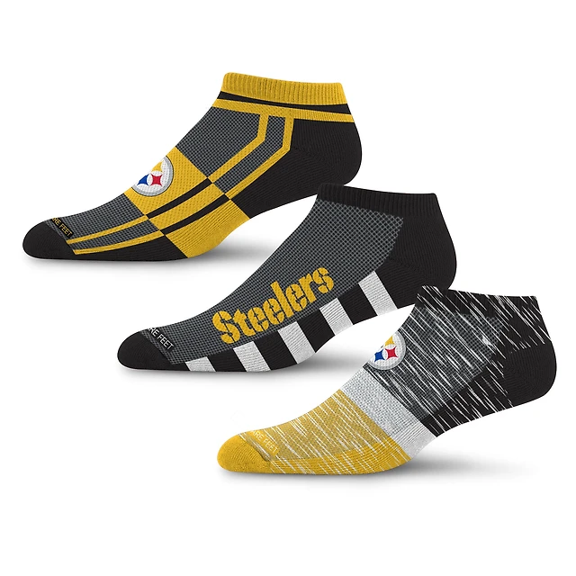 Lot de 3 paires de chaussettes invisibles unisexes pour pieds nus Pittsburgh Steelers Stack Stripe