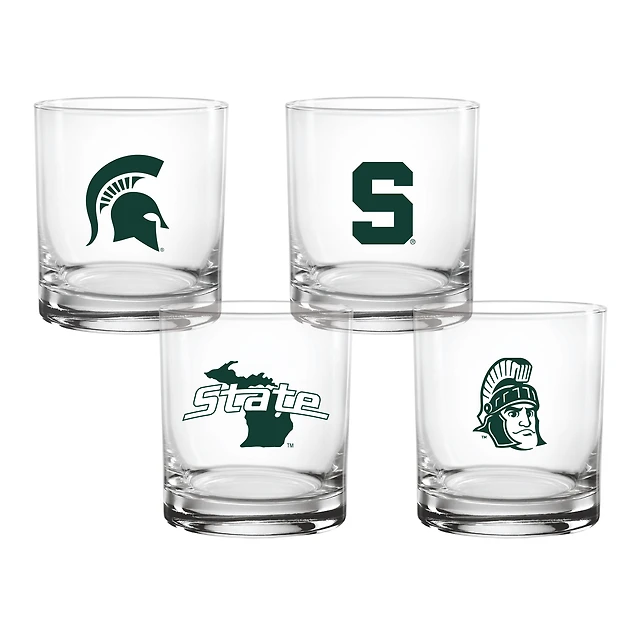 Lot de 4 verres à whisky de collection Michigan State Spartans de 14 oz
