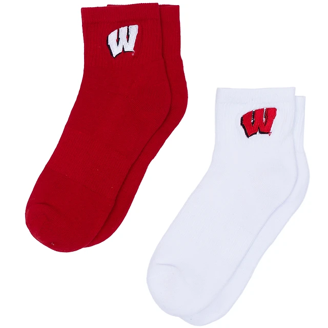 Lot de deux paires de chaussettes mi-longues blanches/rouges ZooZatz pour femmes, motif Wisconsin Badgers
