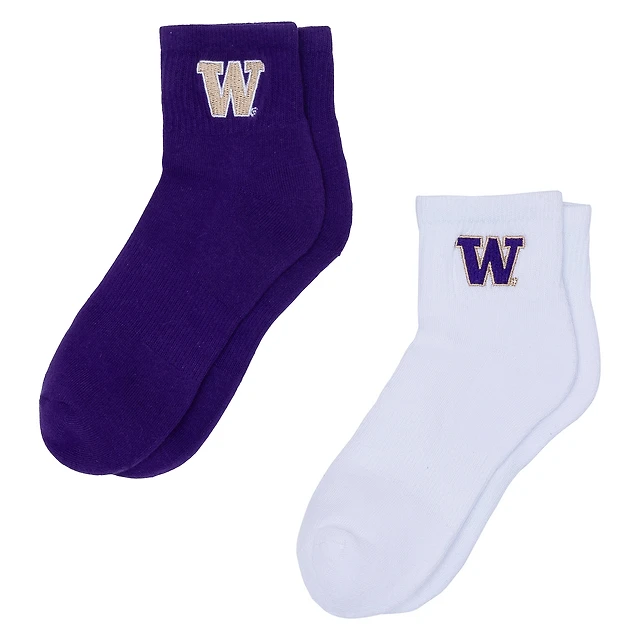 Lot de deux paires de chaussettes mi-longues ZooZatz blanches/violettes Washington Huskies pour femme