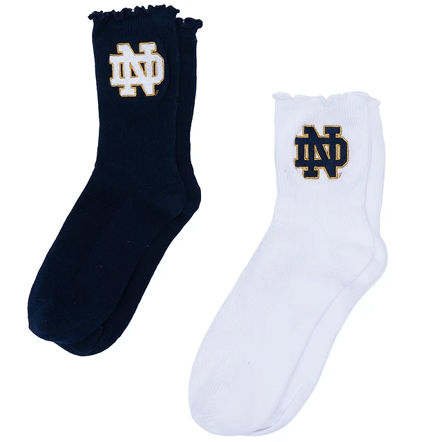 Lot de deux paires de chaussettes mi-mollet blanches/bleu marine ZooZatz pour femmes, motif Notre Dame Fighting Irish