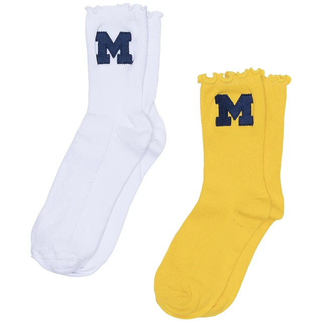 Lot de deux paires de chaussettes mi-mollet ZooZatz blanches/maïs pour femme, motif Michigan Wolverines