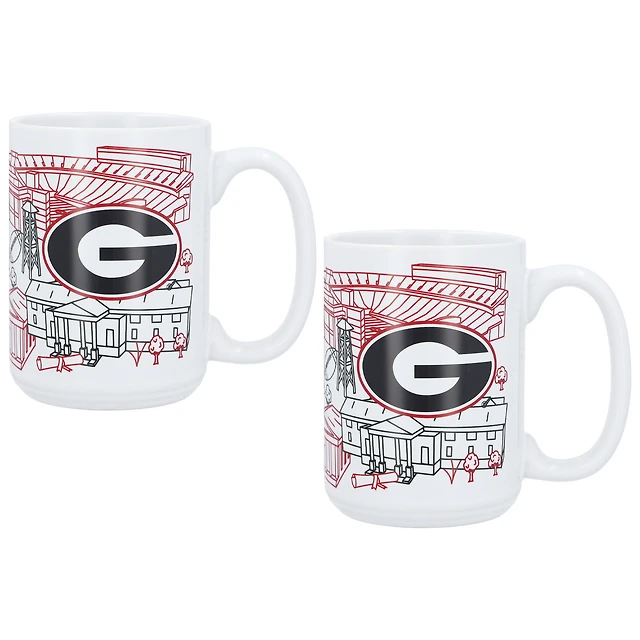 Lot de deux tasses à café Georgia Bulldogs de 15 oz avec motif Campus Line Art