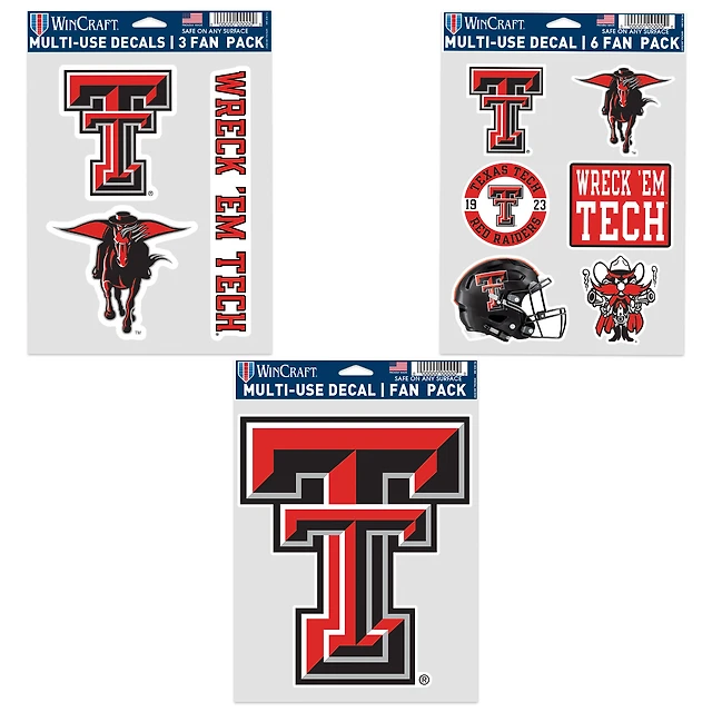 Lot de trois autocollants pour fans des Red Raiders du Texas Tech de WinCraft