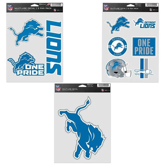 Lot de trois autocollants pour supporters des Detroit Lions de WinCraft