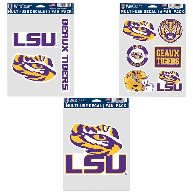 Lot de trois autocollants pour supporters WinCraft LSU Tigers