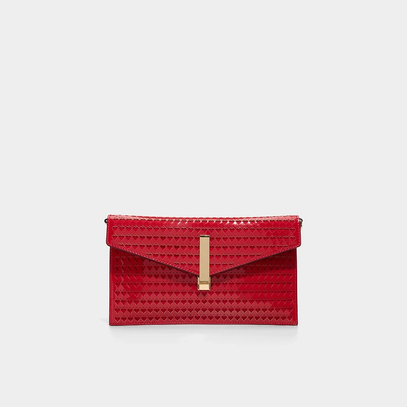 Make a bold statement with the Loveclutchh, a striking hot red heart burnout clutch designed for romance and confidence. The intricate burnout detailing adds texture and visual interest to this eye-catching piece. Carry it as a standalone clutch for evening events or attach the included crossbody strap for versatile, hands-free wear. Whether you're celebrating love or expressing your passionate side, this Valentine's Day essential delivers style with attitude.