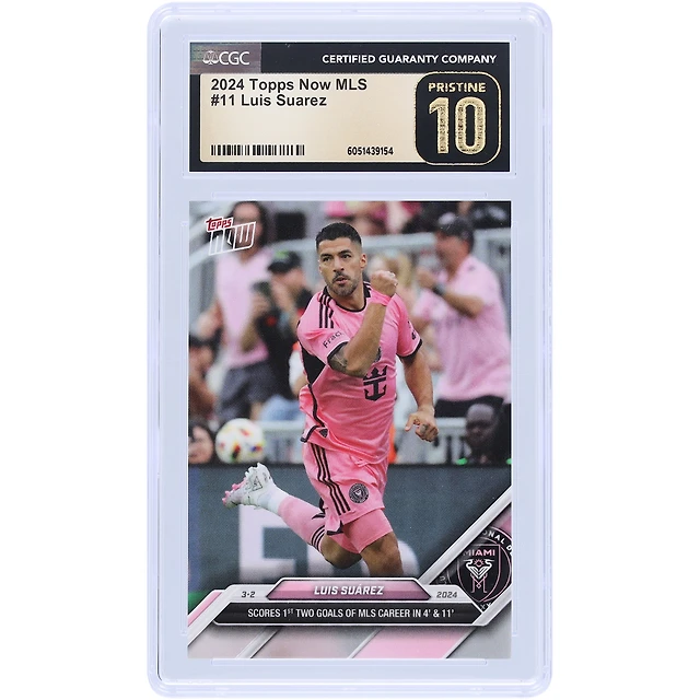 Luis Suarez Inter Miami CF 2024 Topps maintenant MLS marque les deux premiers buts de sa carrière MLS en 4' et 11' # 11 CGC Authentifié Pristine 10 Carte