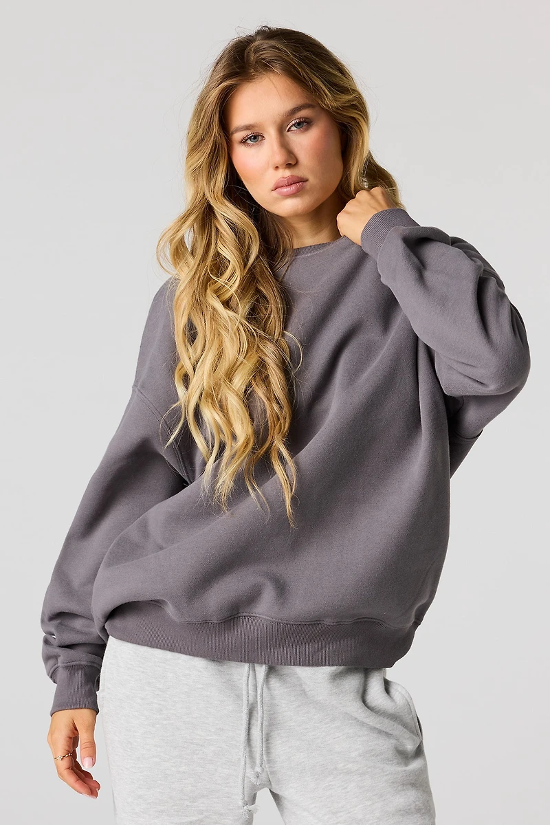 Luxe Fleece: Thicker, softer, longer-lasting. A cotton-rich fabric for breathable comfort that keeps its shape. This sweatshirt features luxe fleece material, crew neckline, long sleeves, ribbed knit trim, and oversized fit.