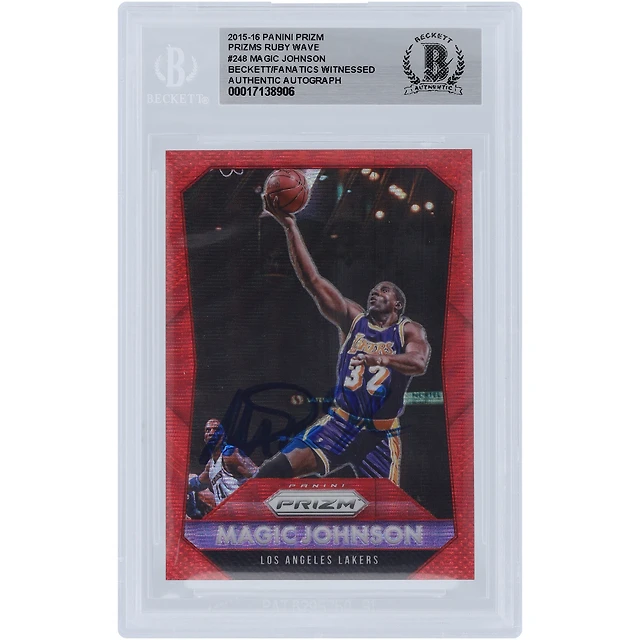 Magic Johnson Los Angeles Lakers Autographed 2015-16 Panini Prizm Ruby Wave Prizm #248 Beckett Fanatics Witnessed Authenticated Card