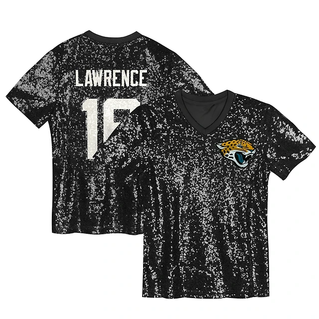 Maillot à col en V sequins noir pour jeunes filles Trevor Lawrence des Jaguars de Jacksonville