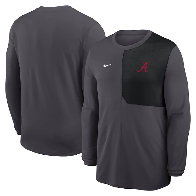 Maillot à manches longues Nike Anthracite Alabama Crimson Tide 2025 Sideline Coach UV Dri-FIT pour homme