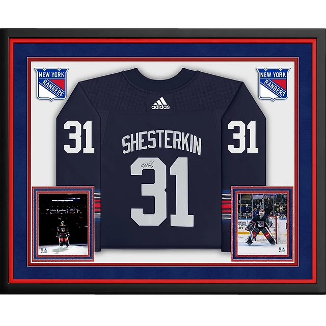 Maillot adidas bleu marine alternatif dédicacé par Igor Shesterkin des Rangers de New York