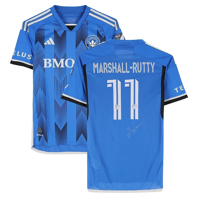 Maillot adidas bleu numéro 11 autographié par Jahkeele Marshall-Rutty du CF Montréal, saison 2024 de la MLS - Taille S