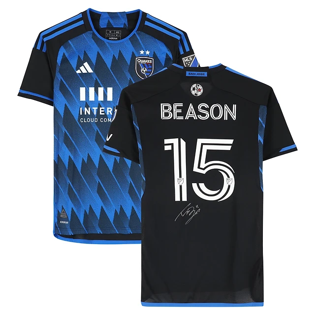Maillot adidas bleu/noir dédicacé Tanner Beason des San Jose Earthquakes, numéro 15, saison 2024 de la MLS - Taille M