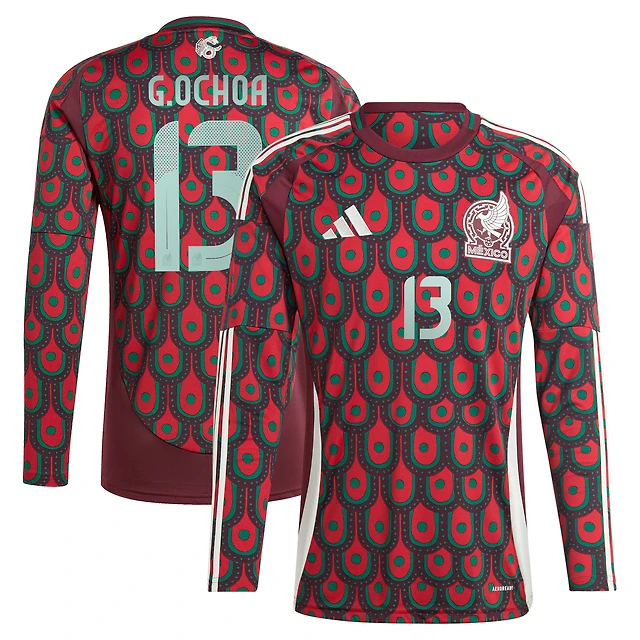 Maillot adidas Guillermo Ochoa bordeaux à manches longues pour homme de l'équipe nationale du Mexique 2024 domicile Replica Player