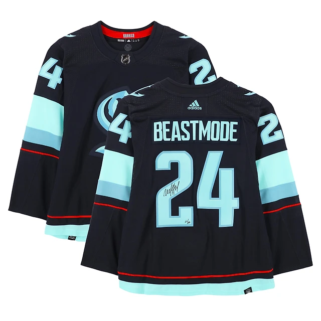 Maillot adidas Seattle Kraken bleu marine dédicacé Marshawn Lynch Seattle Seahawks « Beast Mode » - Édition limitée à 24 exemplaires