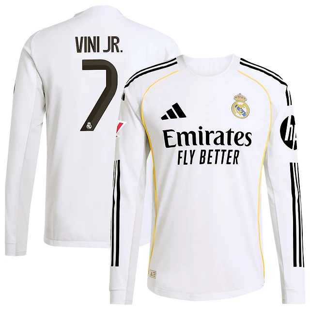 Maillot adidas Vini Jr. Blanc domicile Real Madrid 2025/26 Authentic à manches longues pour homme