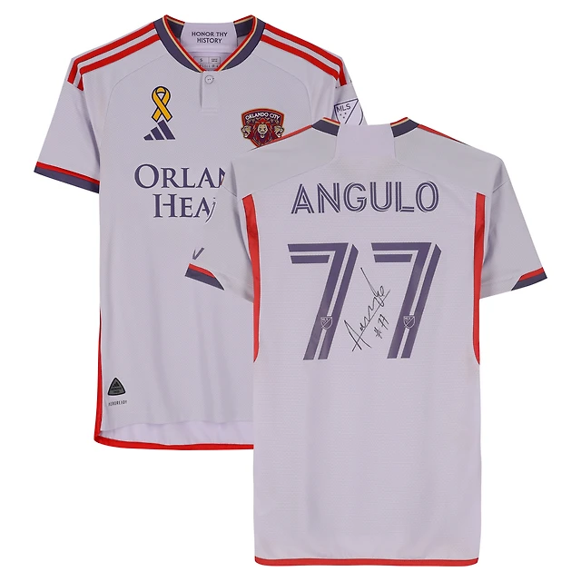 Maillot adidas violet clair dédicacé par Ivan Angulo Orlando City SC, numéro 77, utilisé lors du match de la saison 2024 de la MLS - Taille S