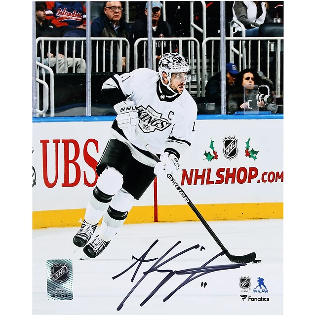 Maillot alternatif blanc autographié de 8" x 10" par Anze Kopitar des Los Angeles Kings avec photo de la rondelle