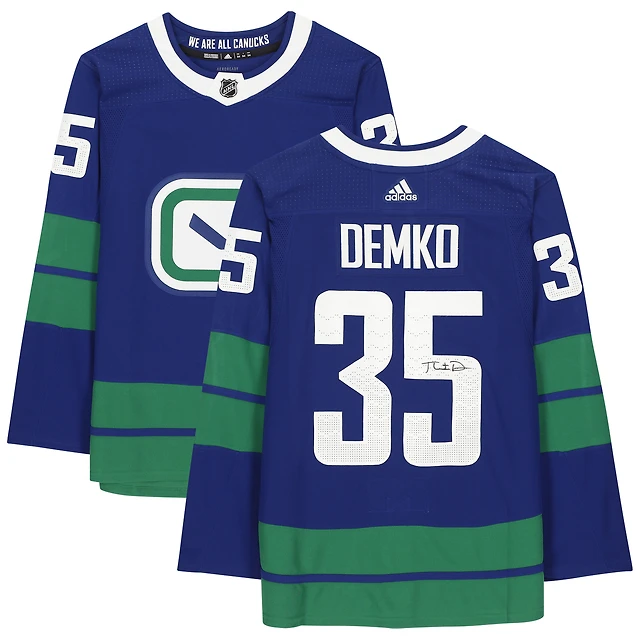 Maillot authentique adidas bleu dédicacé par Thatcher Demko des Vancouver Canucks