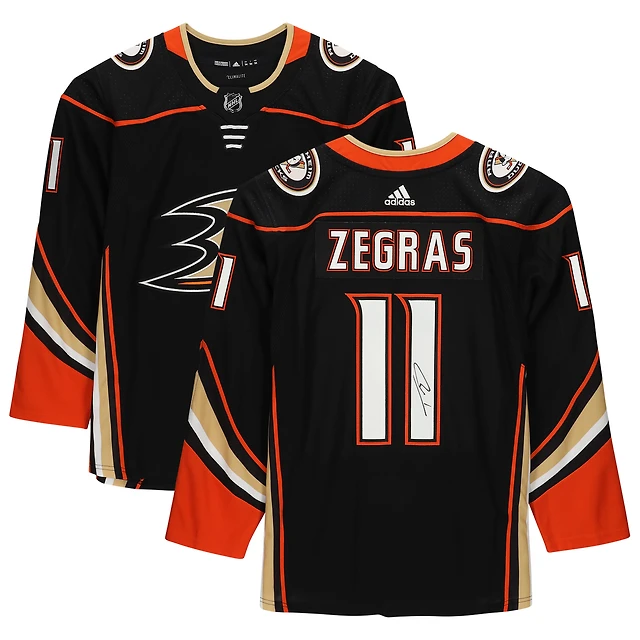Maillot authentique adidas dédicacé par Trevor Zegras Black Anaheim Ducks # 11
