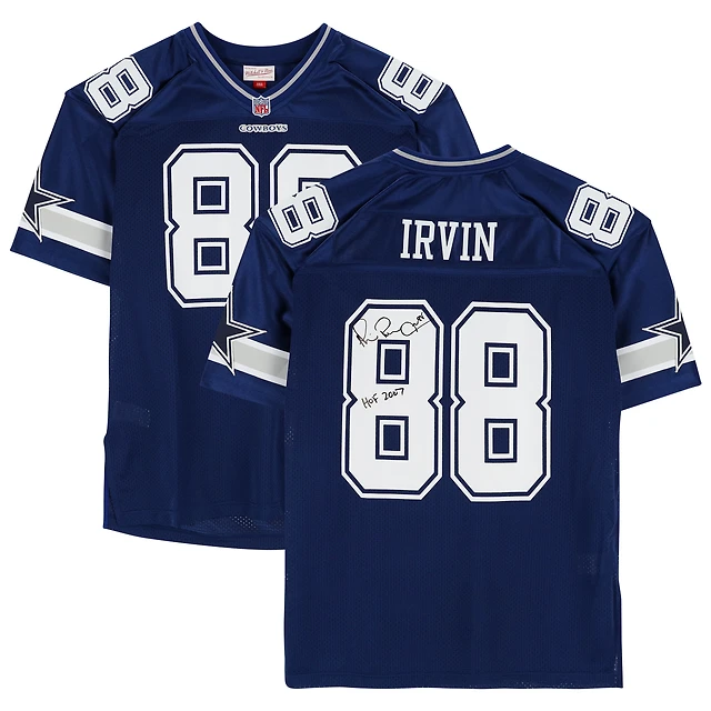 Maillot authentique autographié bleu 1996 Mitchell & Ness des Dallas Cowboys de Michael Irvin avec inscription « HOF 2007 »