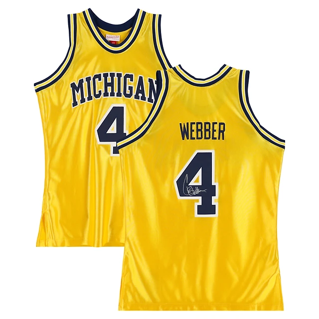 Maillot authentique autographié par Chris Webber des Michigan Wolverines, Maize Mitchell & Ness, 1991-92