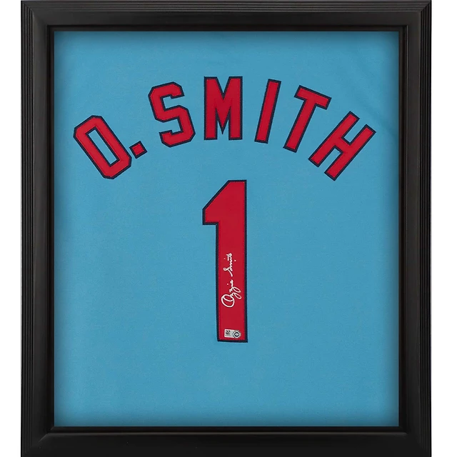 Maillot authentique Mitchell & Ness bleu clair encadré autographié par Ozzie Smith des Cardinals de St. Louis Shadowbox