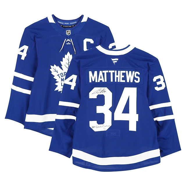 Maillot authentique Pro dédicacé par Auston Matthews des Maple Leafs de Toronto, avec inscription « 26th Leafs Captain » - Édition limitée à 10 exemplaires