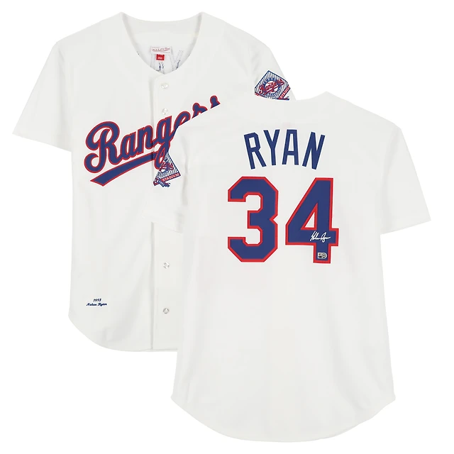 Maillot blanc authentique Mitchell & Ness 1993 autographié par Nolan Ryan des Texas Rangers