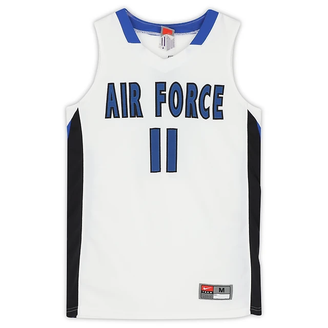 Maillot blanc, bleu et noir n° 11 émis par l'équipe des Falcons de l'Air Force du programme basket-ball