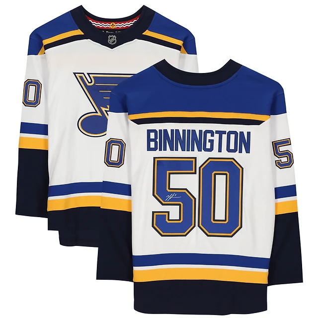Maillot blanc dédicacé Fanatics Breakaway des Blues de St. Louis par Jordan Binnington
