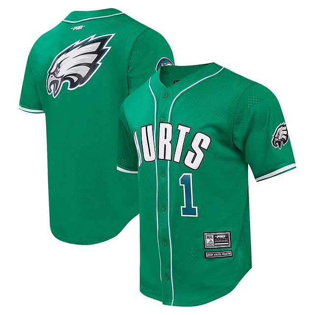 Maillot de baseball boutonné en maille Pro Standard Jalen Hurts Kelly Green Philadelphia Eagles pour hommes