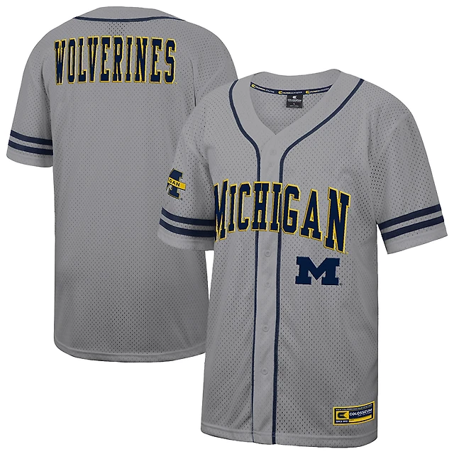 Maillot de baseball Free Spirited pour homme Colosseum Gray Michigan Wolverines