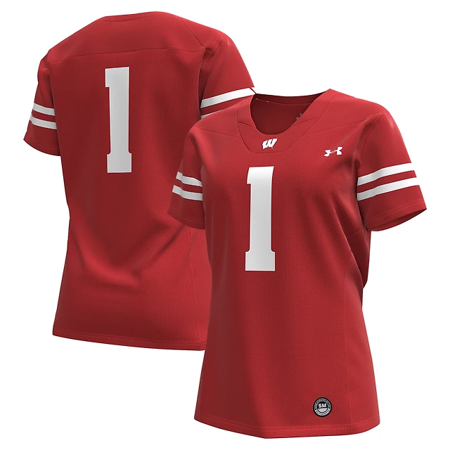 Maillot de football réplique des Badgers du Wisconsin #1 rouge Under Armour pour femme
