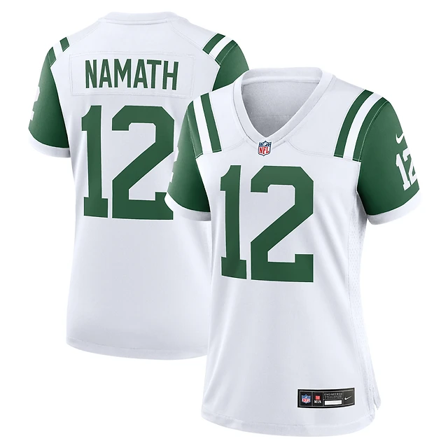 Maillot de jeu joueur retraité alternatif classique des New York Jets Nike Joe Namath blanc pour femme