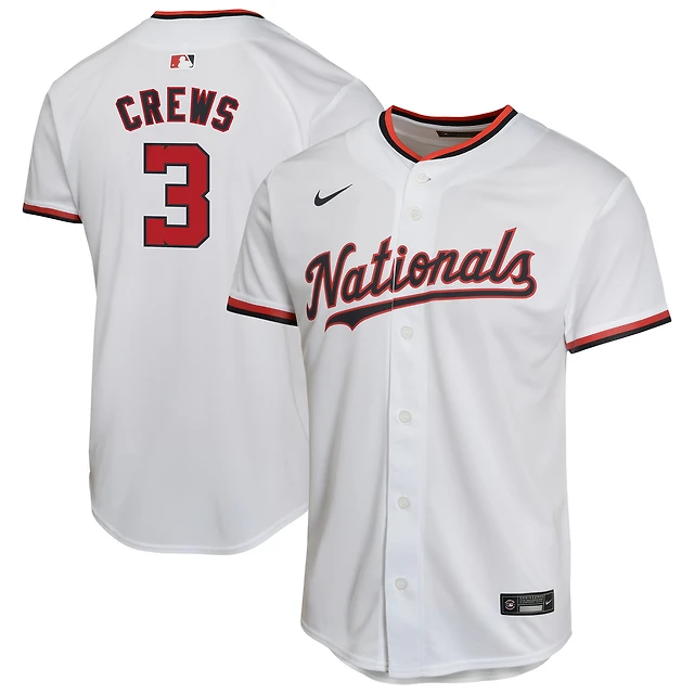 Maillot de joueur alternatif Nike Dylan Crews blanc des Nationals Washington pour jeunes