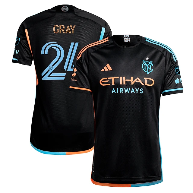 Maillot de joueur authentique adidas Tayvon gris noir New York City FC 2024 24/7 Kit pour homme