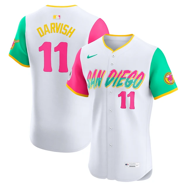 Maillot de joueur d'élite Nike Yu Darvish blanc pour homme, City Connect, Padres San Diego, avec écusson sponsorisé