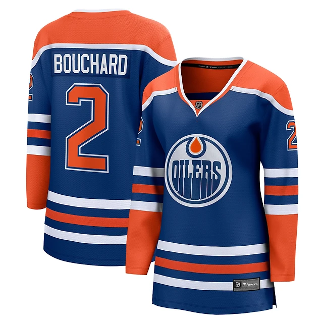 Maillot de joueur échappé à domicile des Royal Edmonton Oilers d'Evan Bouchard, fanatiques féminines