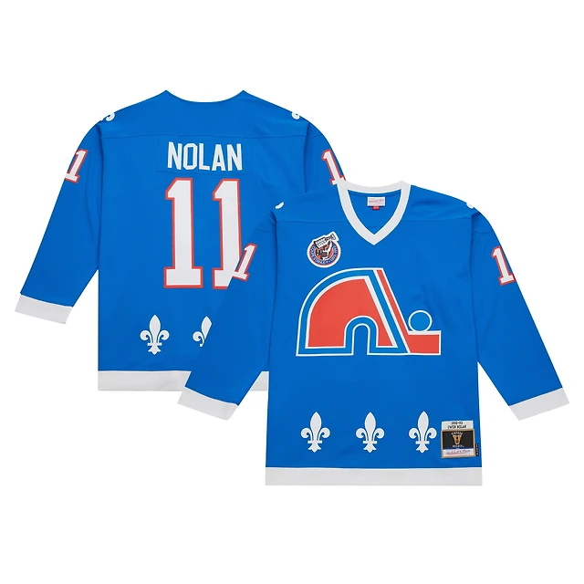 Maillot de joueur la ligne bleue Mitchell & Ness Owen Nolan bleu des Nordiques Québec 1992/93 pour hommes