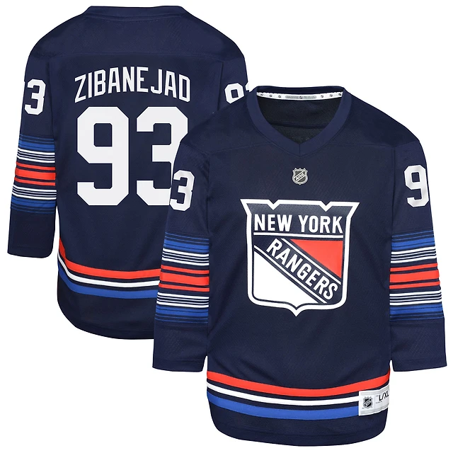 Maillot de joueur réplique alternatif des Rangers New York la marine Mika Zibanejad pour jeunes