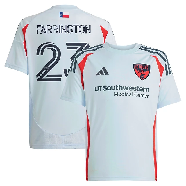 Maillot de joueur réplique du kit Inferno FC Dallas 2025 bleu clair adidas Logan Farrington pour jeunes