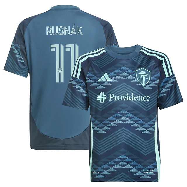 Maillot de joueur réplique du kit The Salish Sea 2025 des Seattle Sounders FC bleu Albert Rusnak pour jeunes adidas