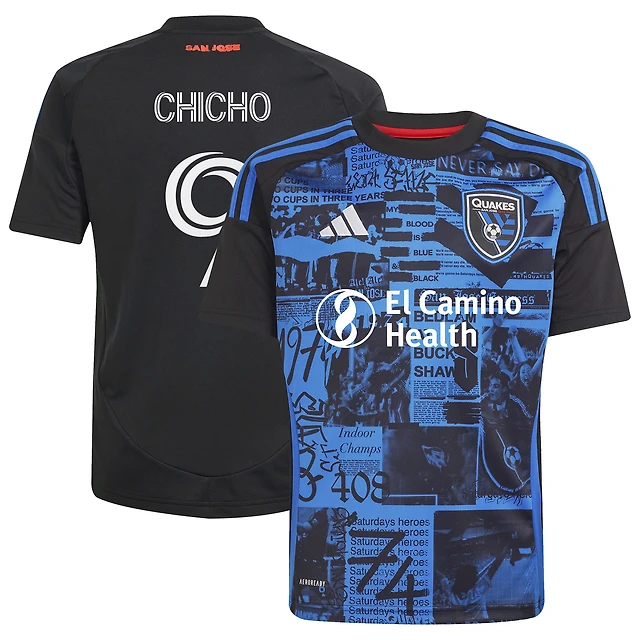 Maillot de joueur réplique tête d'affiche des San Jose Earthquakes 2025 noir pour jeunes adidas Cristian Arango