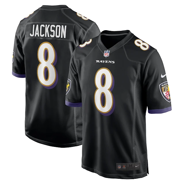 Maillot de match alternatif Nike Lamar Jackson pour hommes, noir, Baltimore Ravens