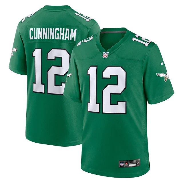 Maillot de match joueur retraité alternatif Nike Randall Cunningham Kelly Green Philadelphia Eagles pour homme