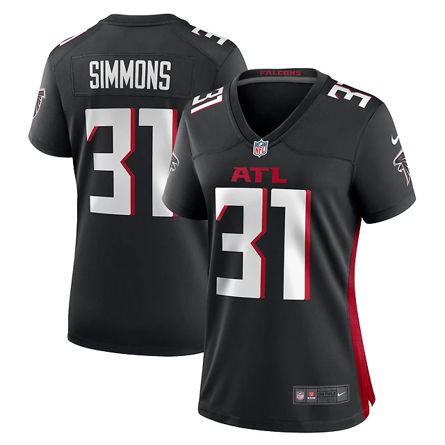 Maillot de match Nike Justin Simmons noir pour femme des Falcons d'Atlanta