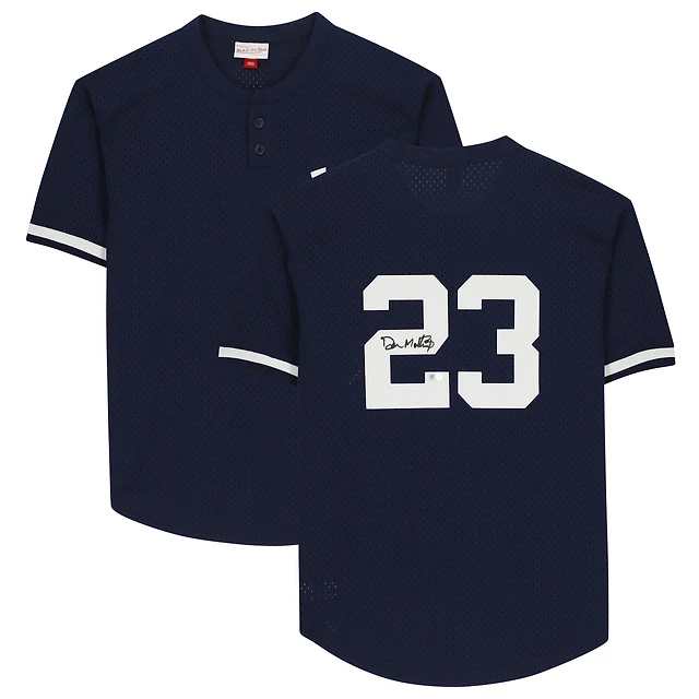 Maillot d'entraînement au bâton autographié par Don Mattingly des Yankees de New York, réplique de la collection Mitchell & Ness Cooperstown, bleu marine